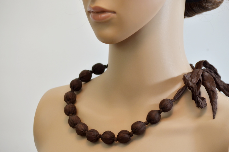 Něžné korálky jsou zhotoveny z čistého přírodního hedvábí, ručně barveného.